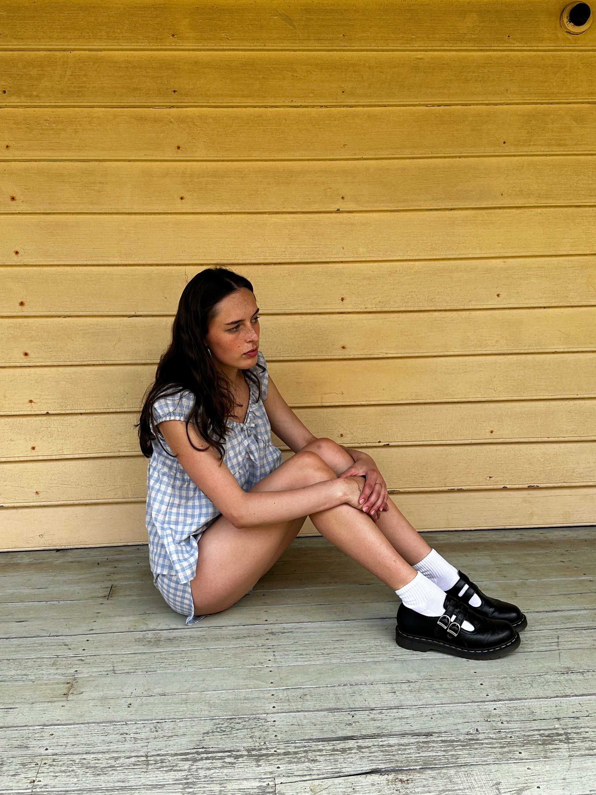 A relaxed blouse with a scooped gathered neckline and short puff sleeves. Finished with a delicate bow at the front and bralette like bodice pieces with a gathered detail below each cup.